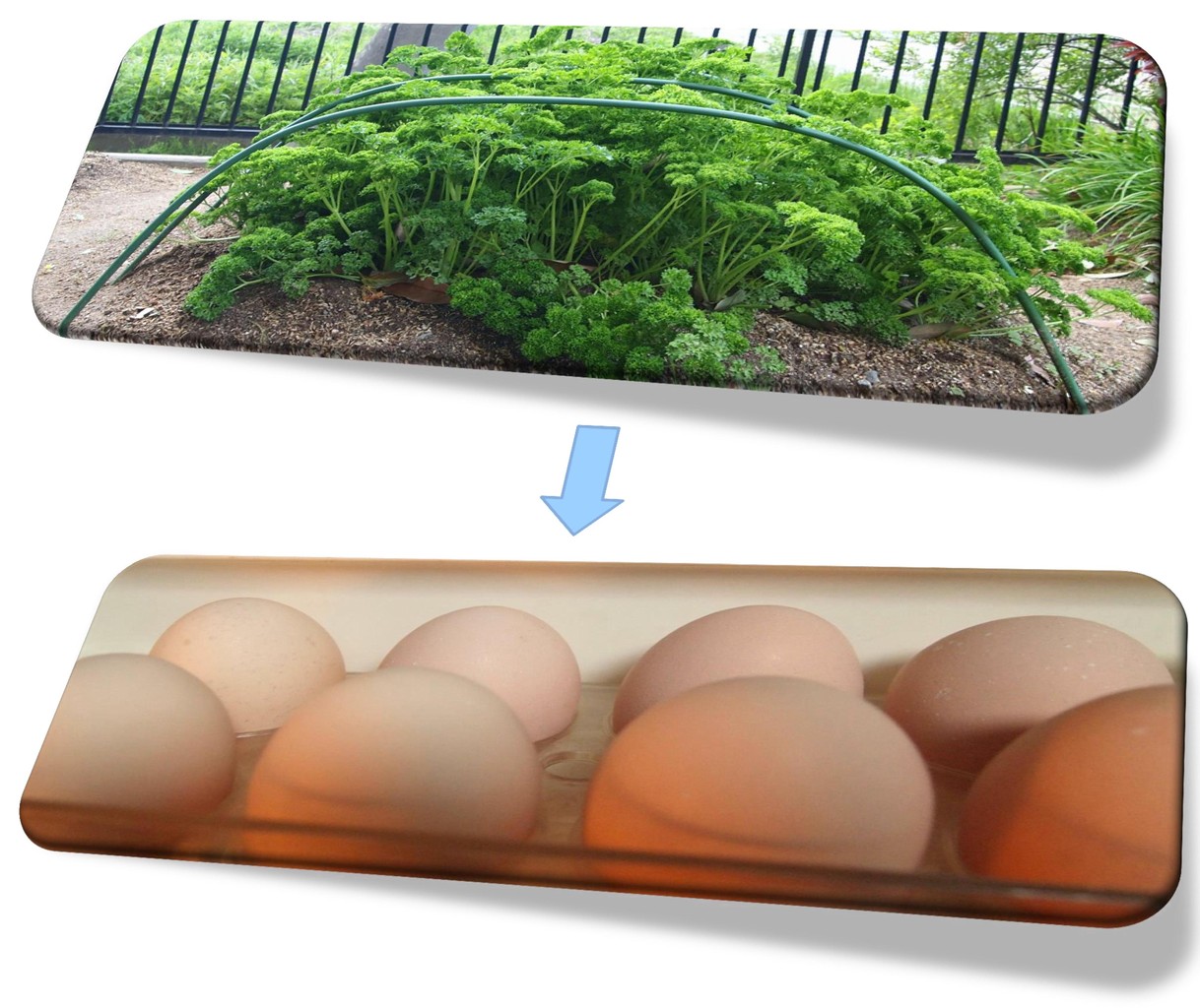 パセリの苗木が鳥骨鶏の玉子に化けた瞬間。