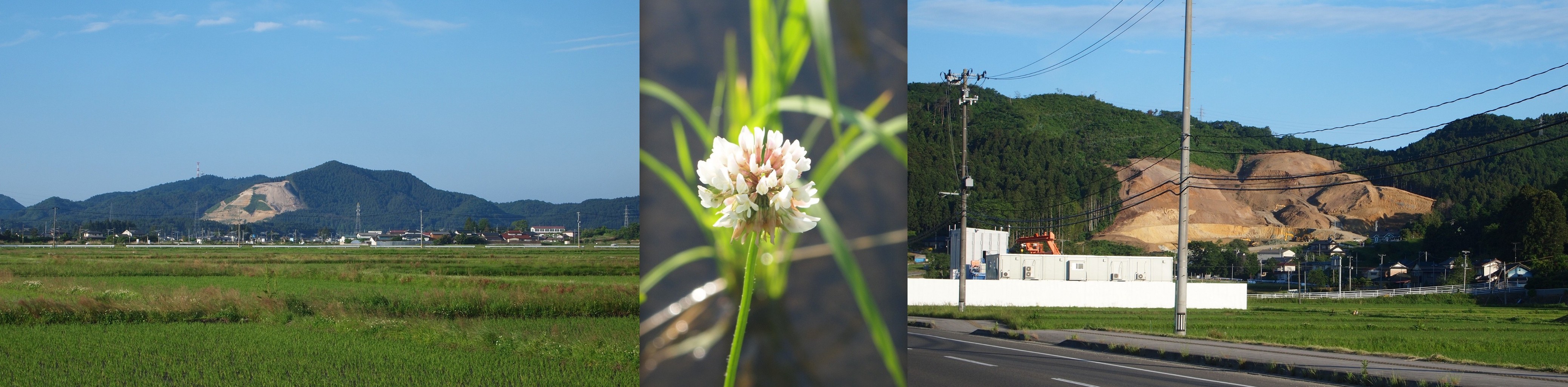 まだヒンヤリする防潮堤のコンクリートの上に座りながら,蔵王連峰を眺めつつ。