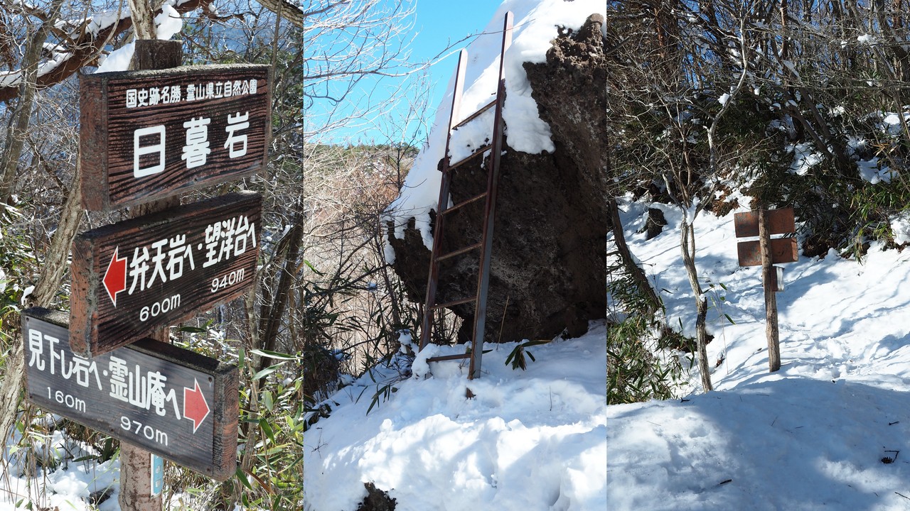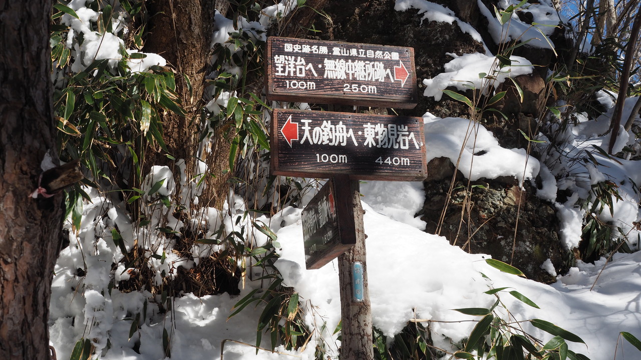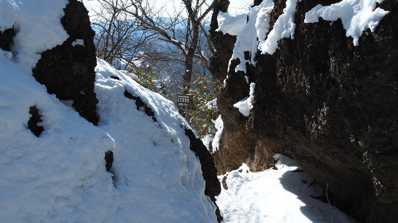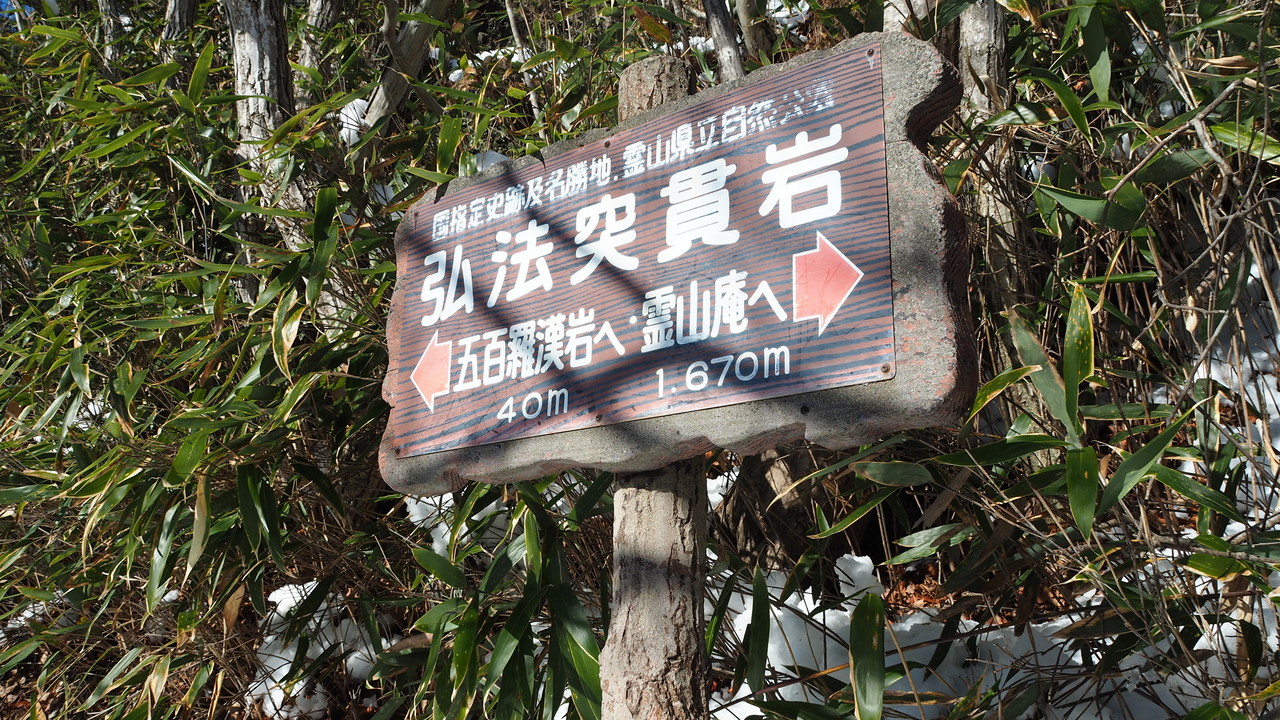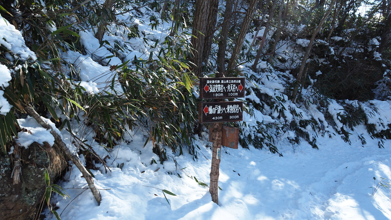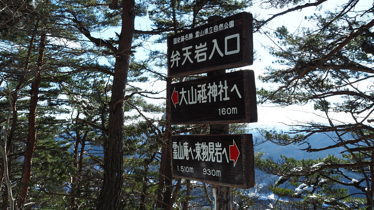 今回は大山祗神社へは行かず,先ほどの標識まで戻って東物見岩へ