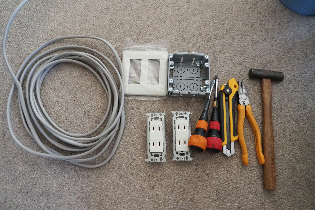 こちら側の壁にも通線可能だったので、こちら側の壁にもコンセント追加。