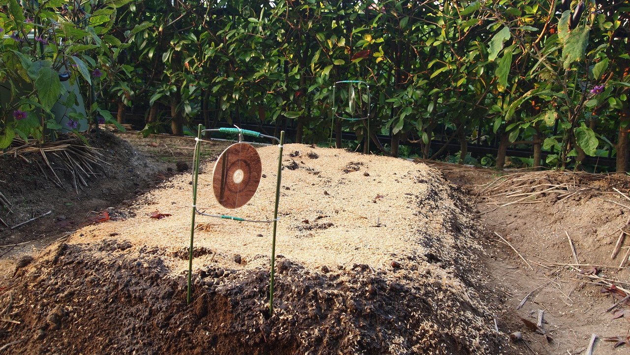 竹酢液を希釈して散布(効き目絶大)+DVDキラキラ撃退治具(効き目不明)