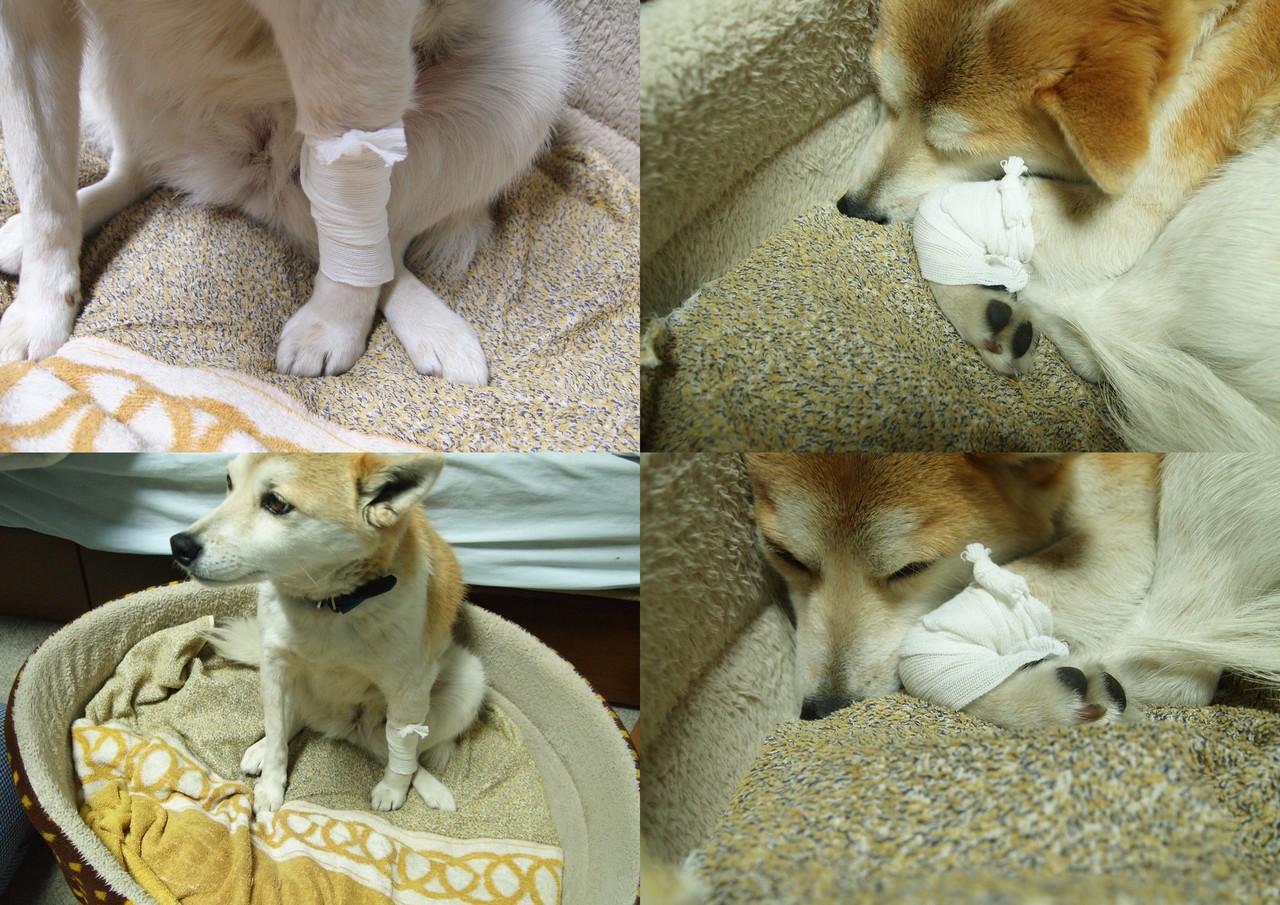 眠い目をこすりながらの翌朝・・・包帯は綺麗に剥がされ,下敷きになってました。