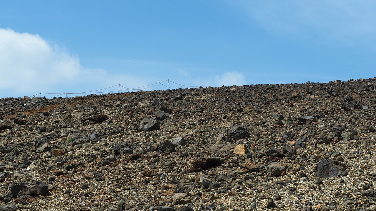 真青な空と,荒涼とした山肌。