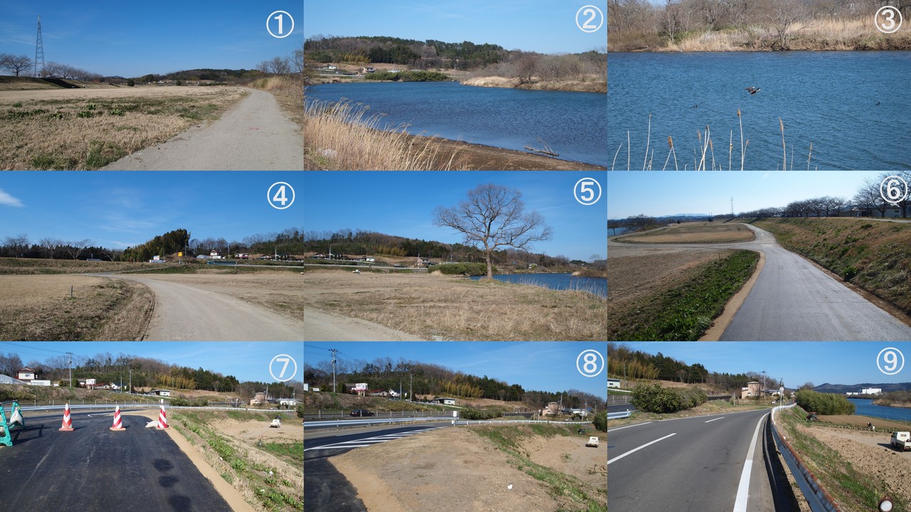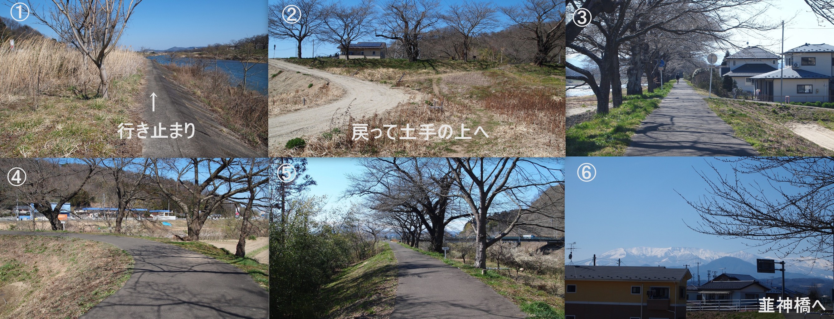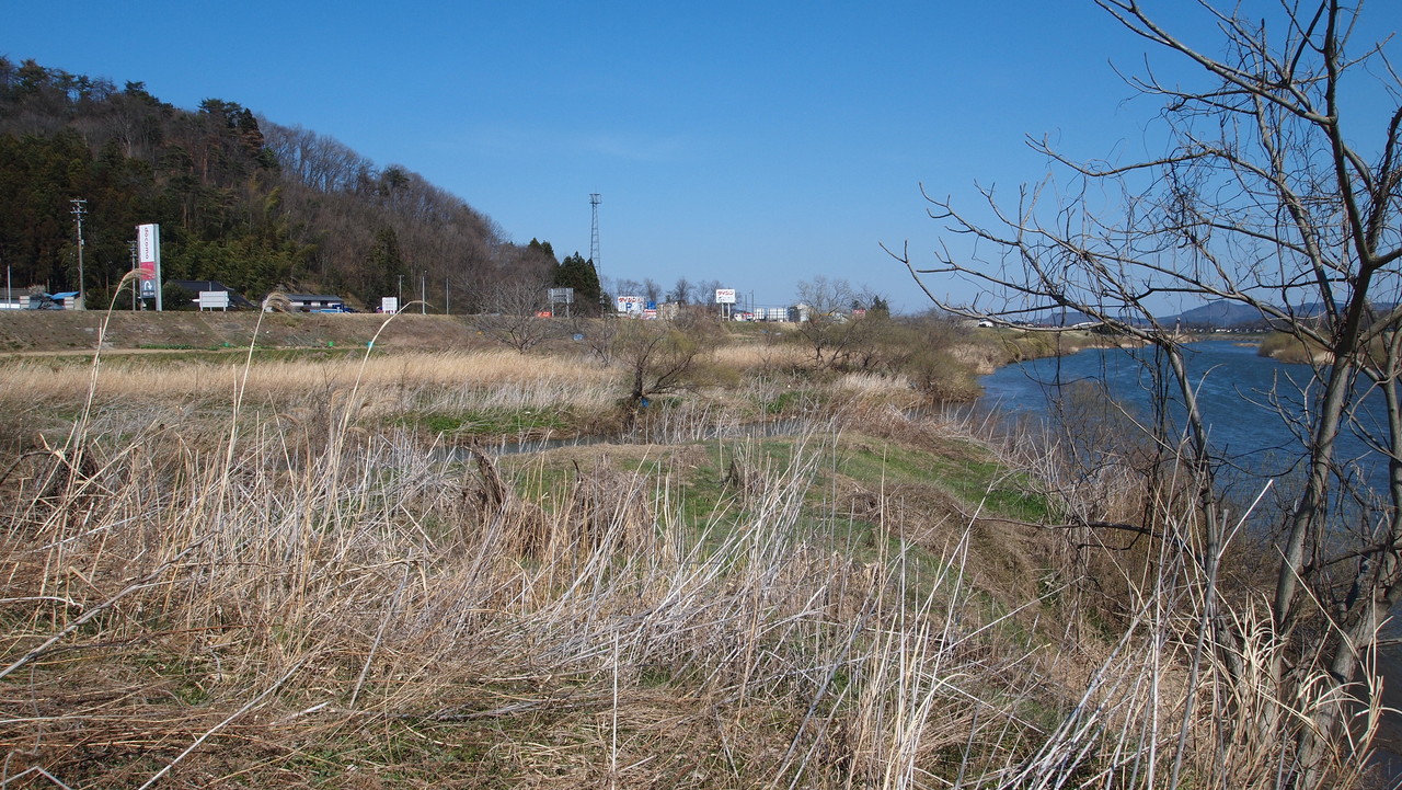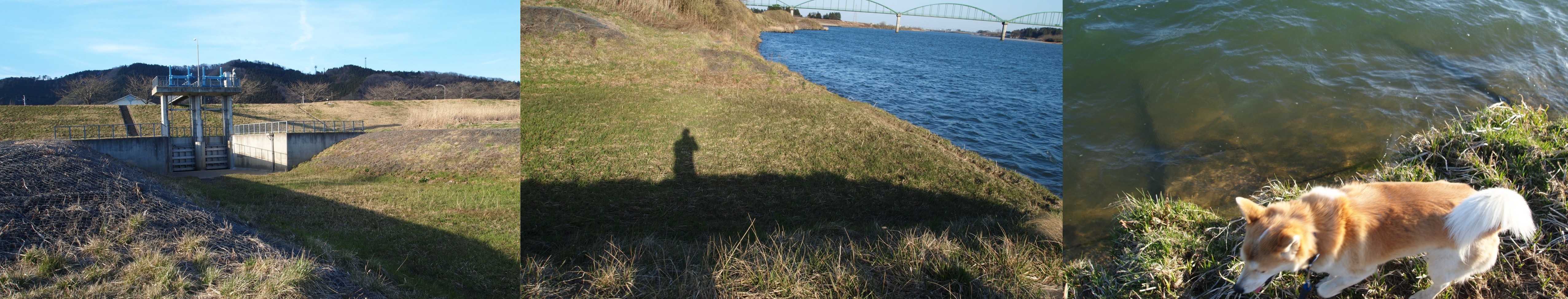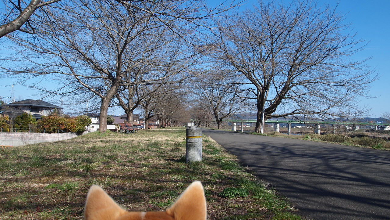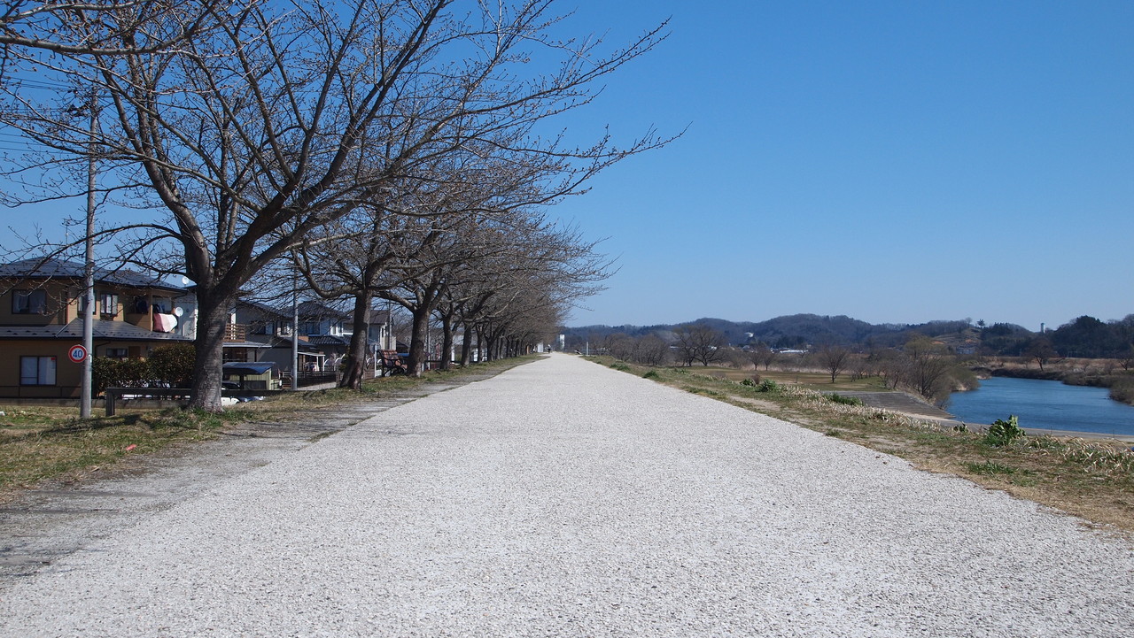 堤防の上に登り。
