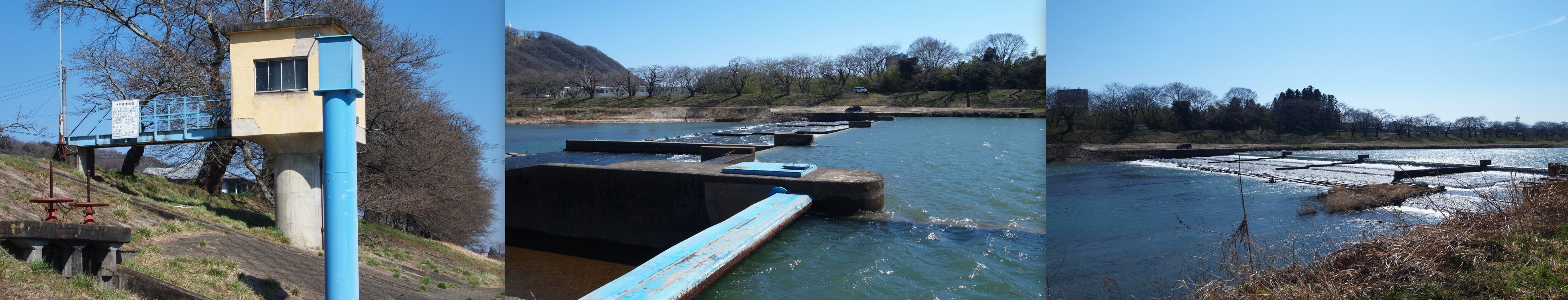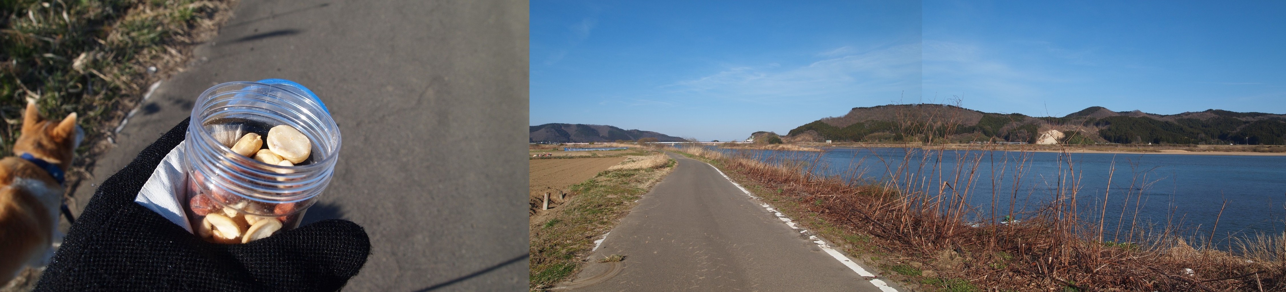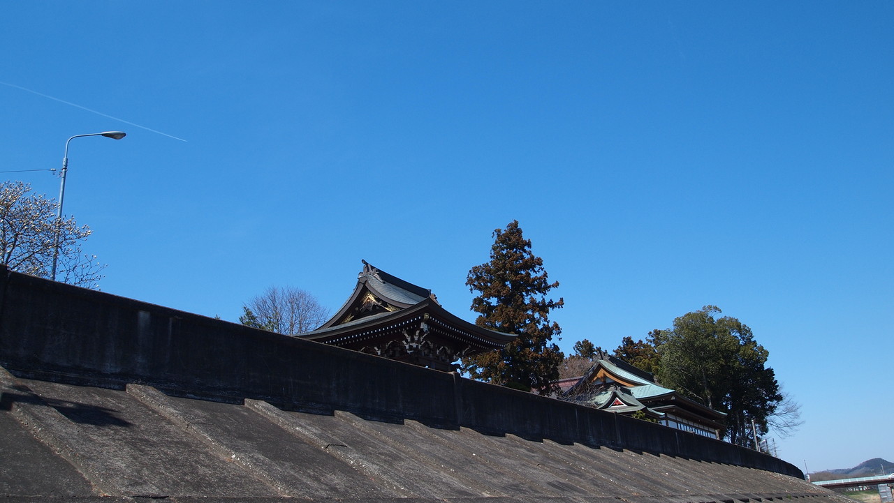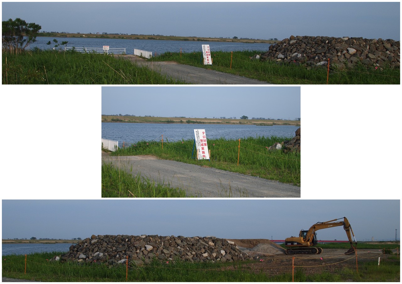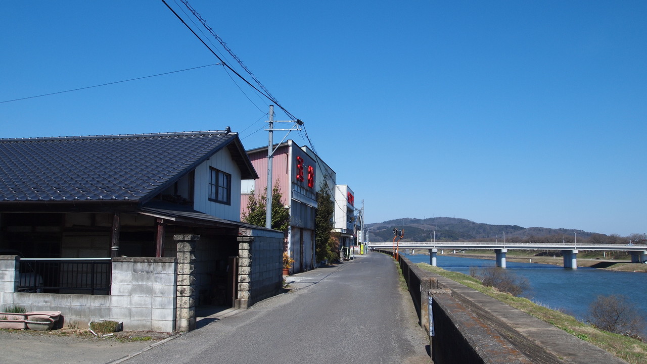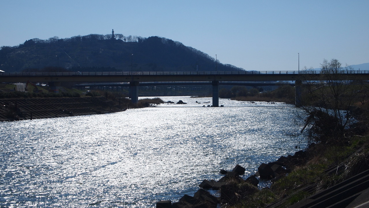 堤防の上に登り。