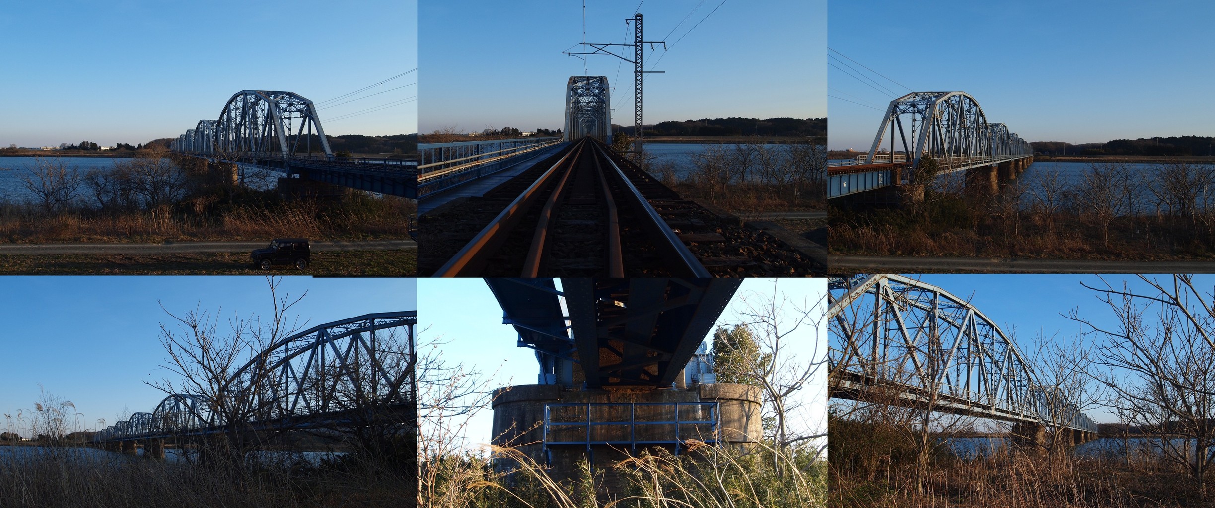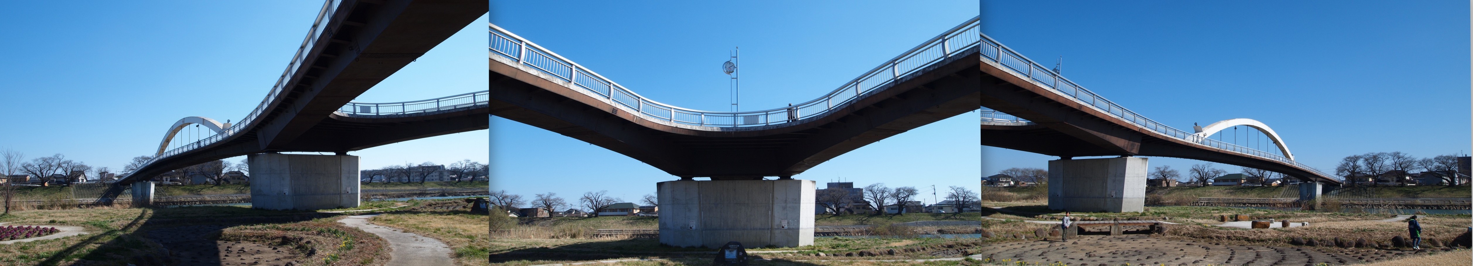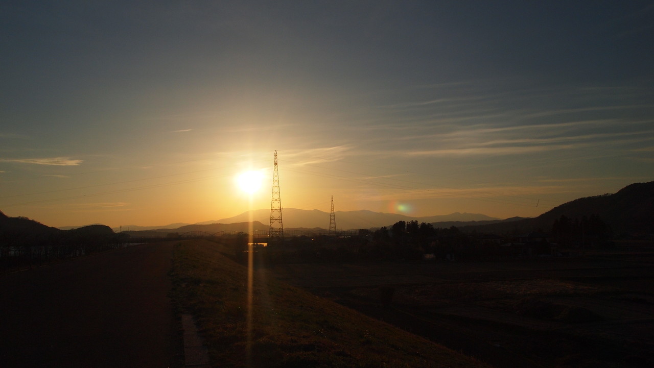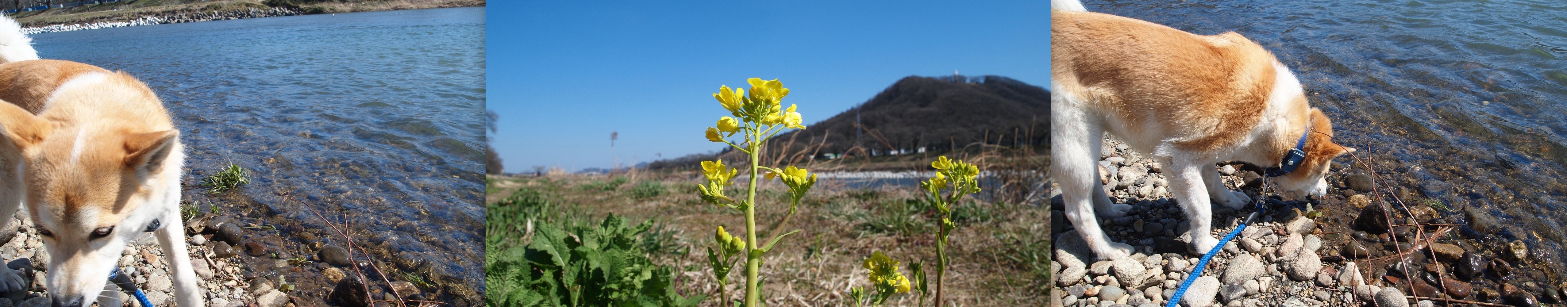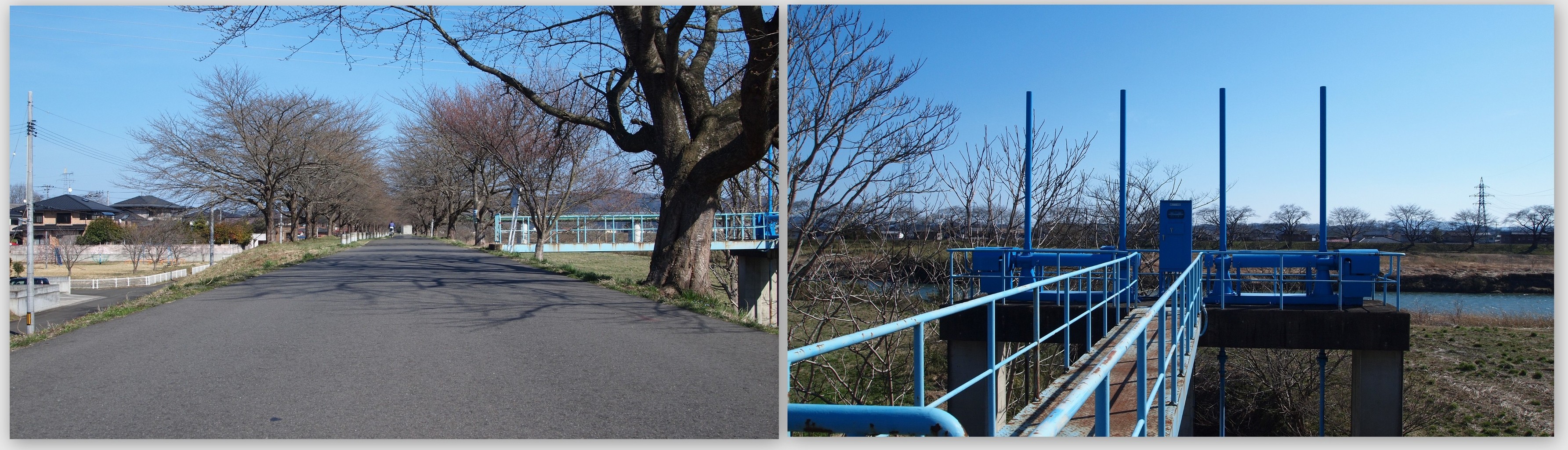 堤防の上に登り。
