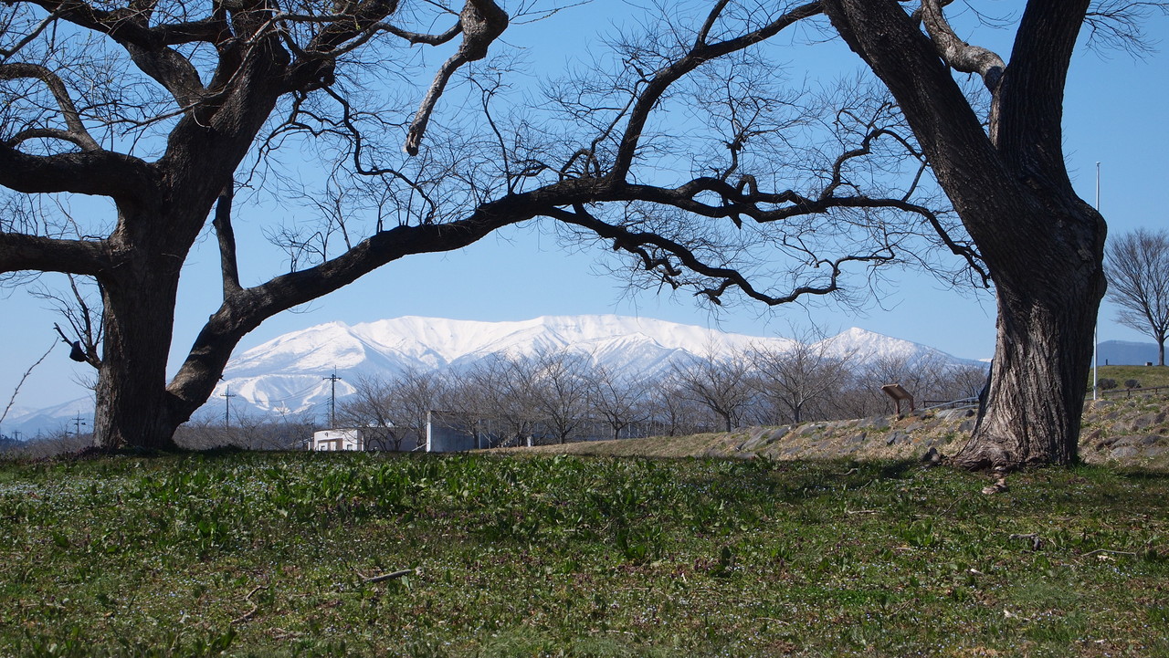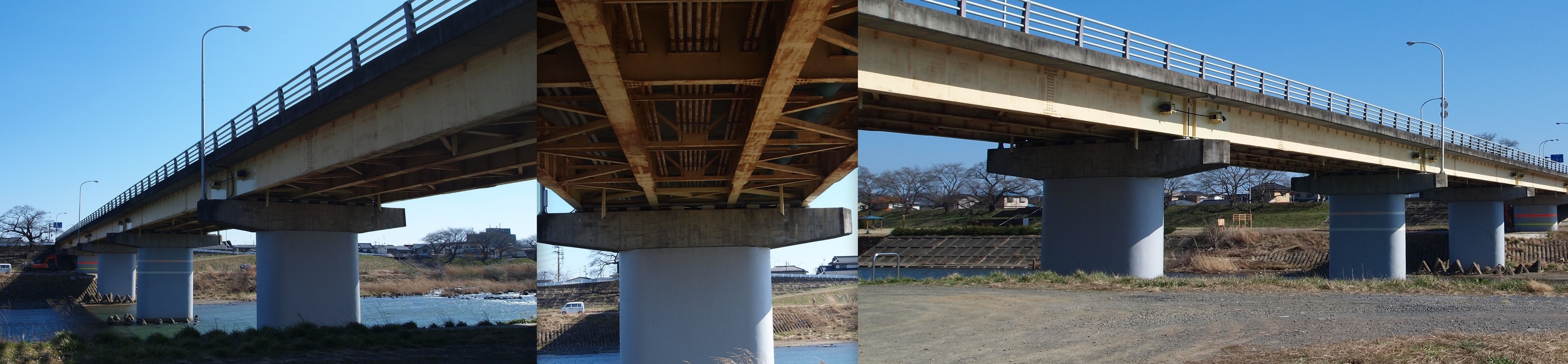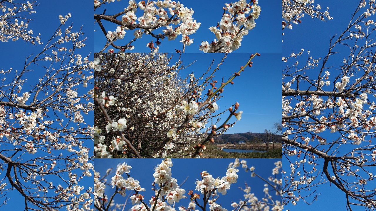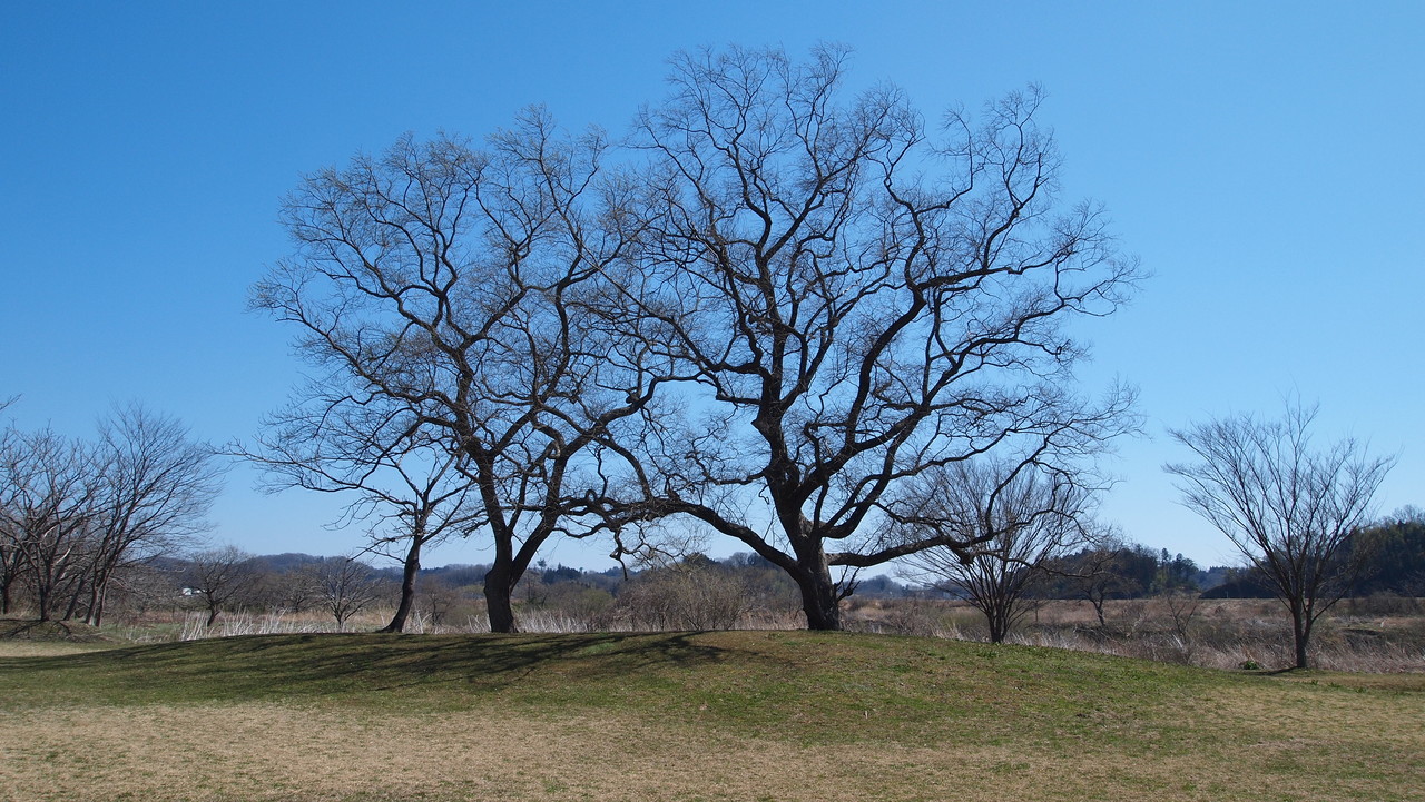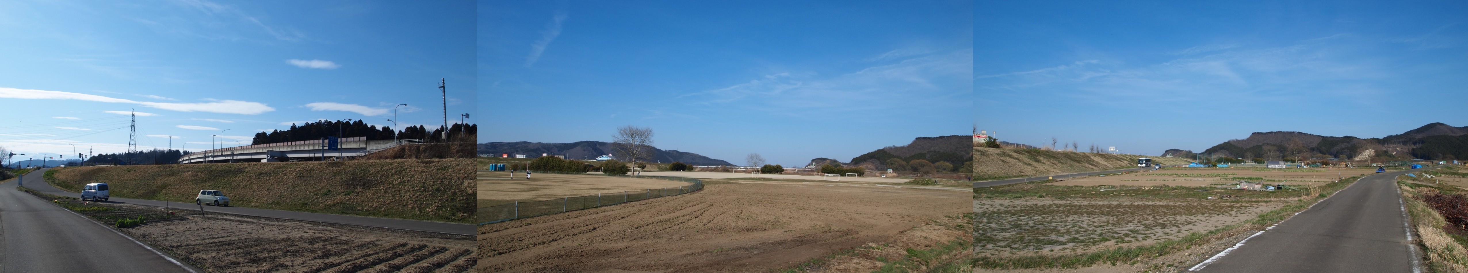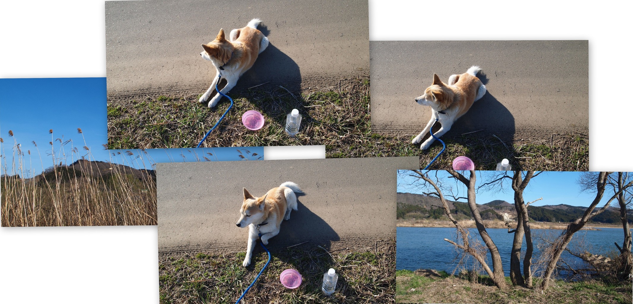 堤防の上に登り。