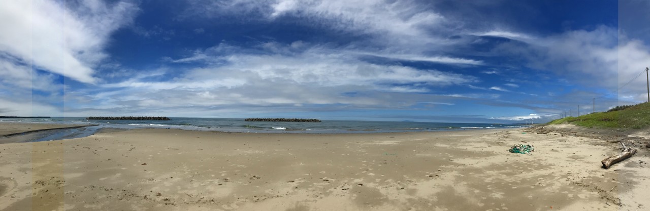 海老カツサンドイッチ1個と牛乳200mlを片手に仁賀保海岸へ